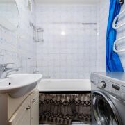 - Санузел раздельный, стены облицованы плиткой, что упрощает уход и сохраняет аккуратный вид при повседневной эксплуатации.