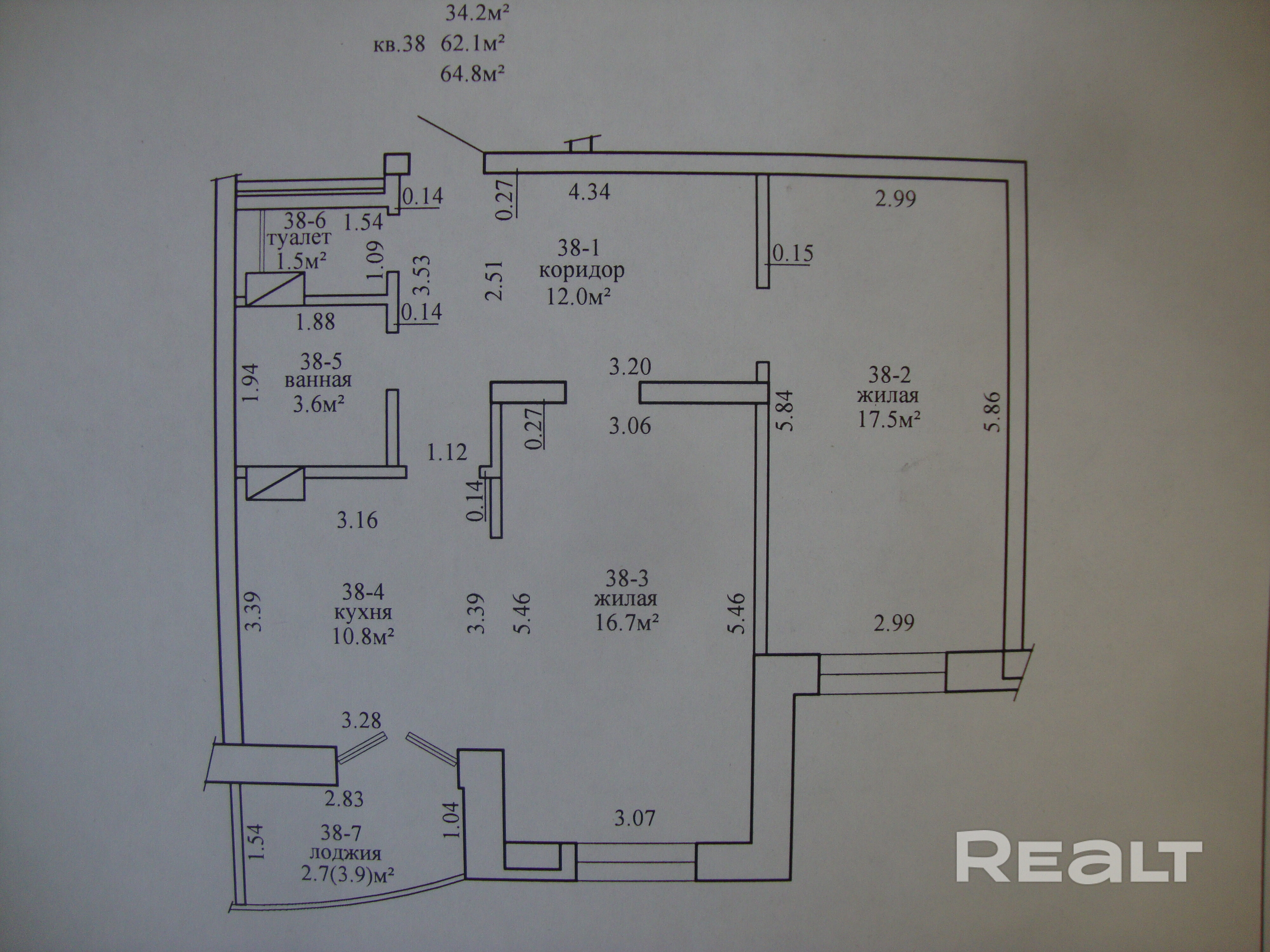 34 м²