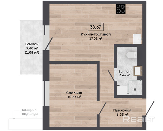 - Формат: евродвушка - просторная кухня-гостиная + комната