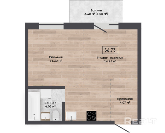 - Формат: евродвушка - просторная кухня-гостиная + комната