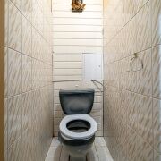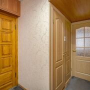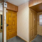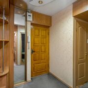 В коридоре двойная входная дверь: наружная металлическая, внутренняя деревянная. Домофон.
