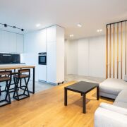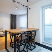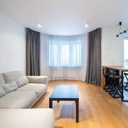 Выполнен дизайнерский ремонт с  использованием качественных материалов в светлых тонах. Меблирована и оснащена всей необходимой бытовой техникой европейских марок.