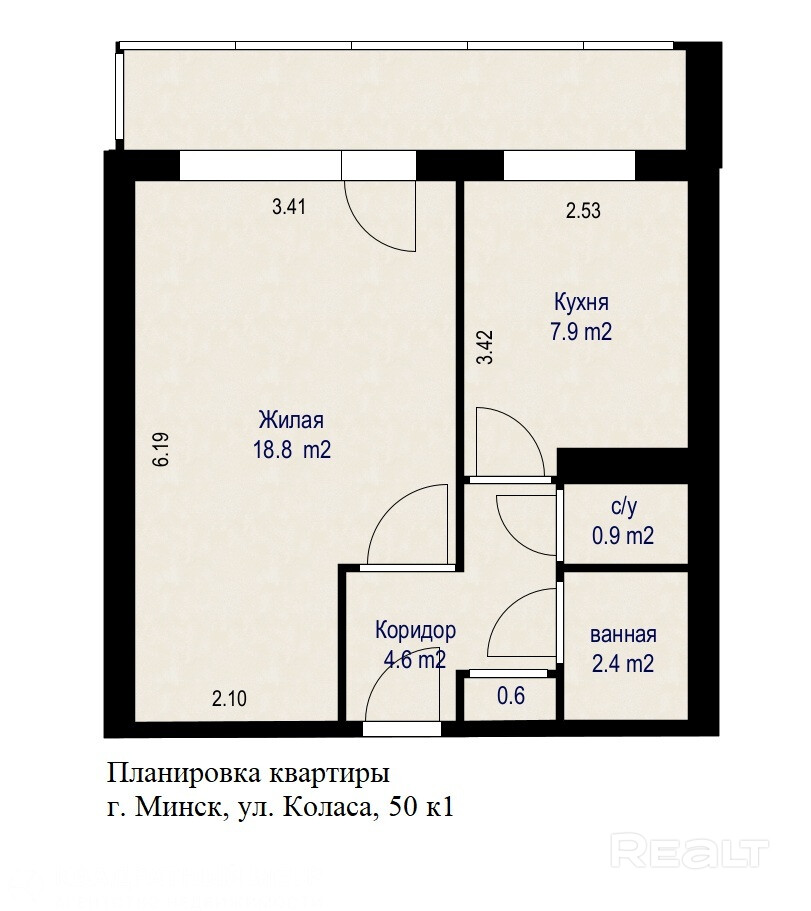 - Просторный балкон: Огромный балкон, охватывающий как комнату, так и кухню.