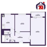 - Квартира с общей площадью 46,4 кв.м. Жилая площадь составляет 27,6 кв.м., площадь кухни - 7,1 кв.м.