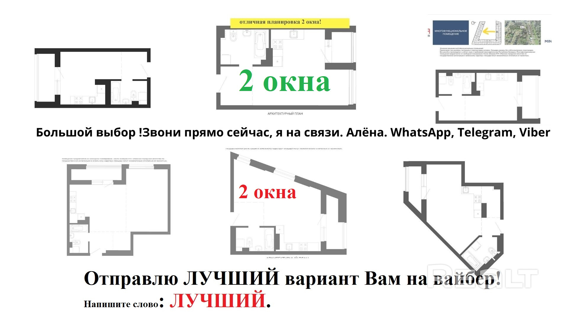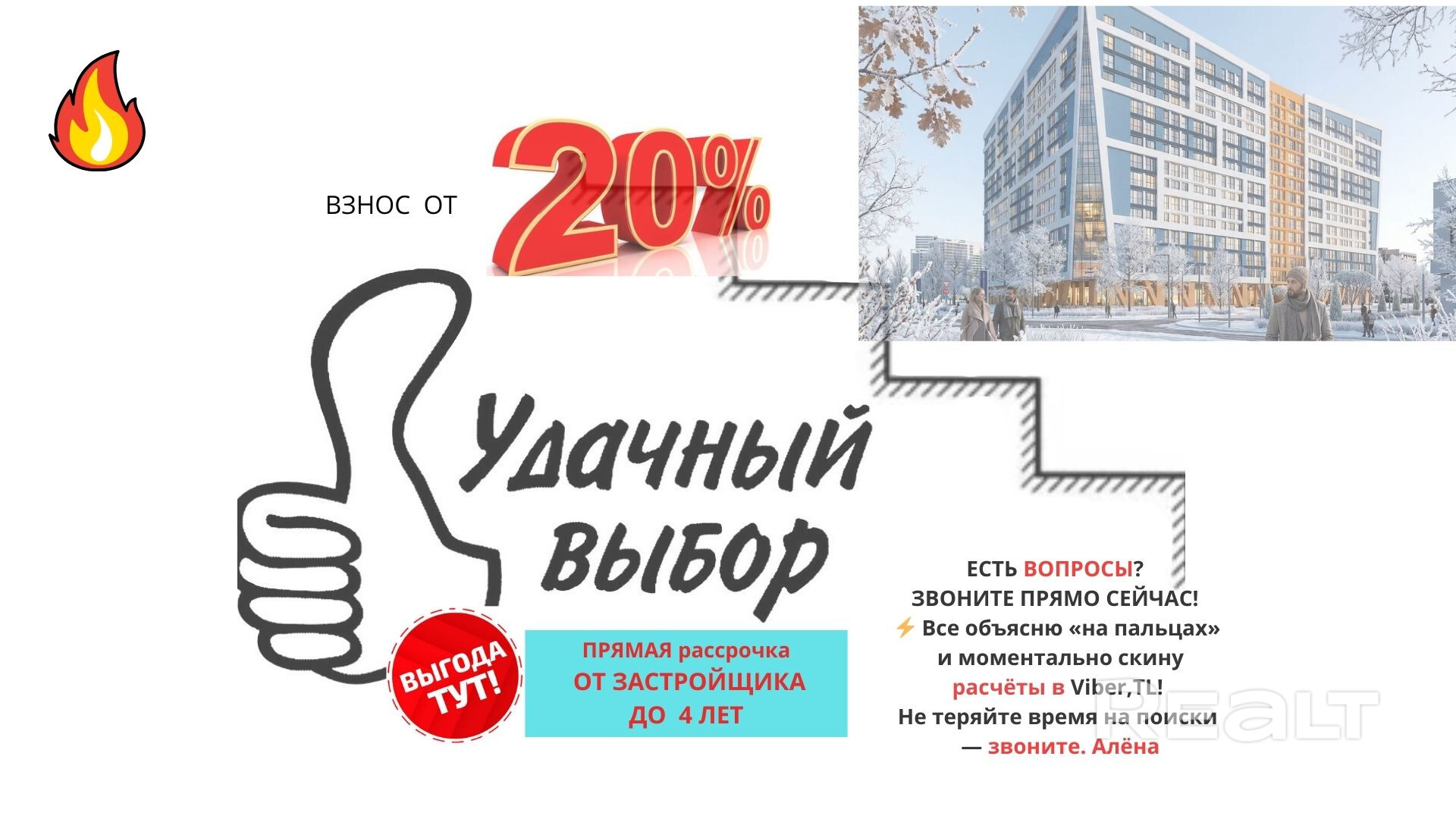 Выгодная цена. Взнос-от 20%. Звони прямо сейчас, я на связи 24/7. Алёна. WhatsApp, Telegram, Viber