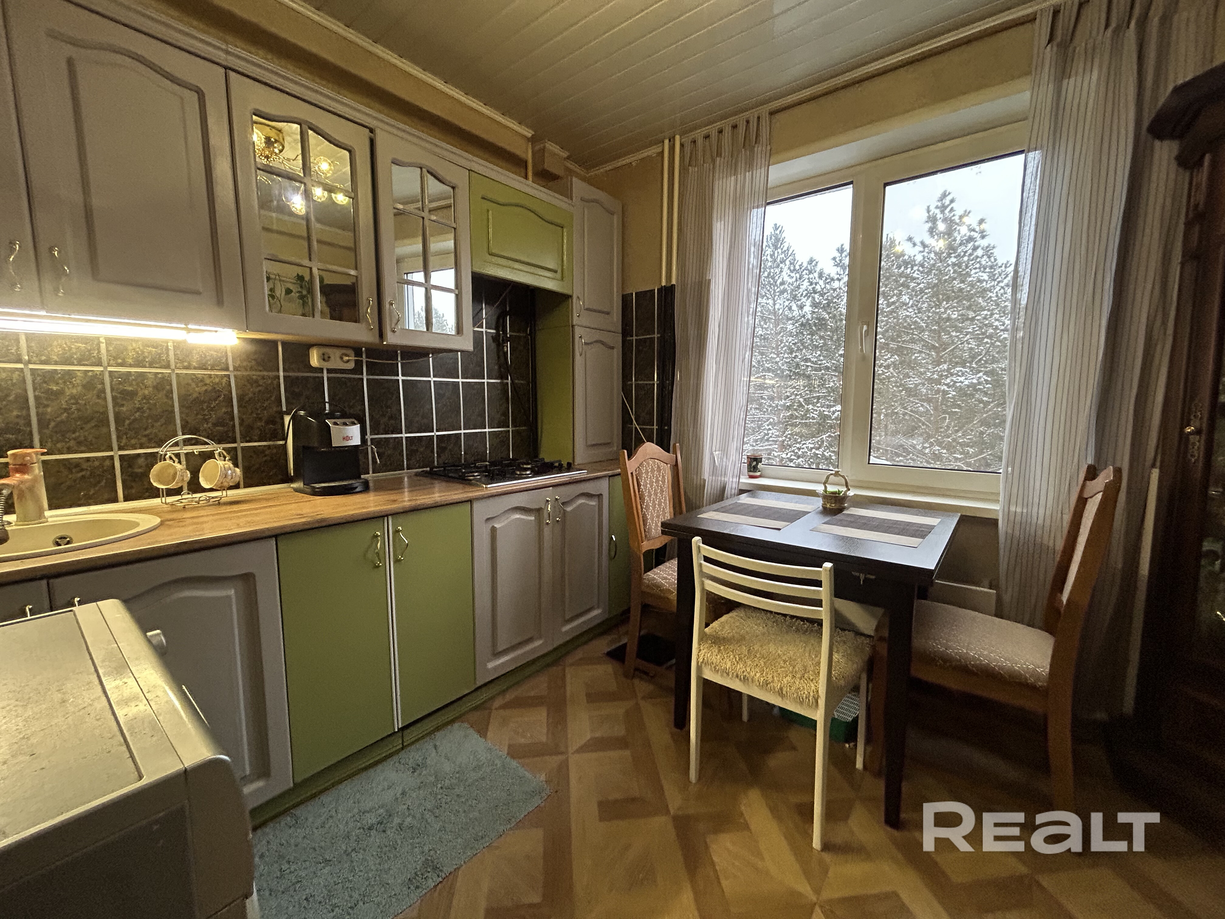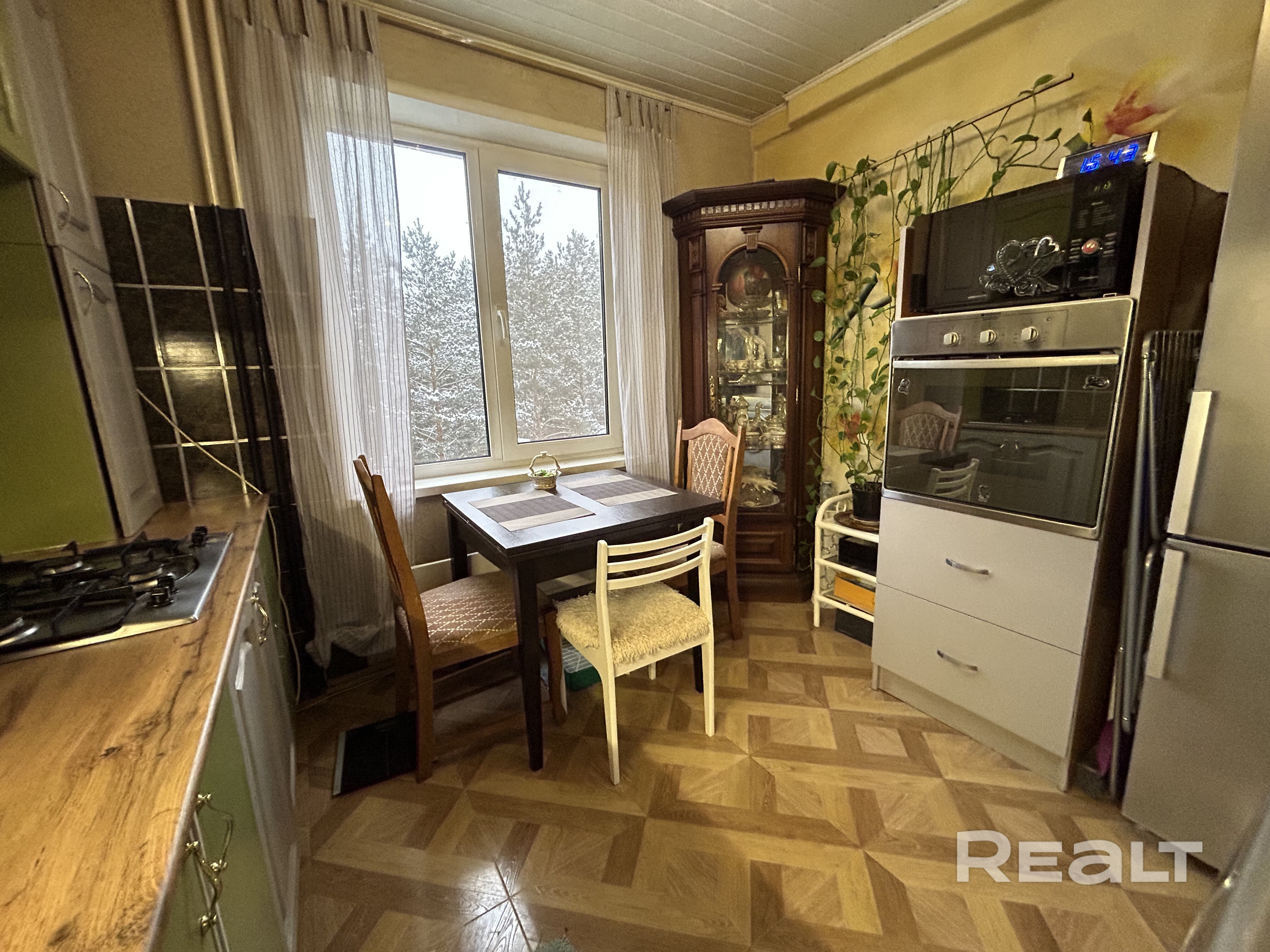 Квартира теплая и уютная, в отличном жилом состоянии: установлены стеклопакеты, пол в комнате - модульная доска, в кухне и прихожей, а также в санузеле - плитка.