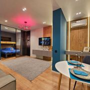 Уютная, большая и светлая однокомнатная квартира на 24 этаже с панорамным видом на город. В квартире произведён дизайнерский ремонт. В одноподъездном доме три скоростных лифта. Возле дома шикарный парк и ботанический сад для пеших прогулок. Станция метро "Московская" находится в 300 метрах.