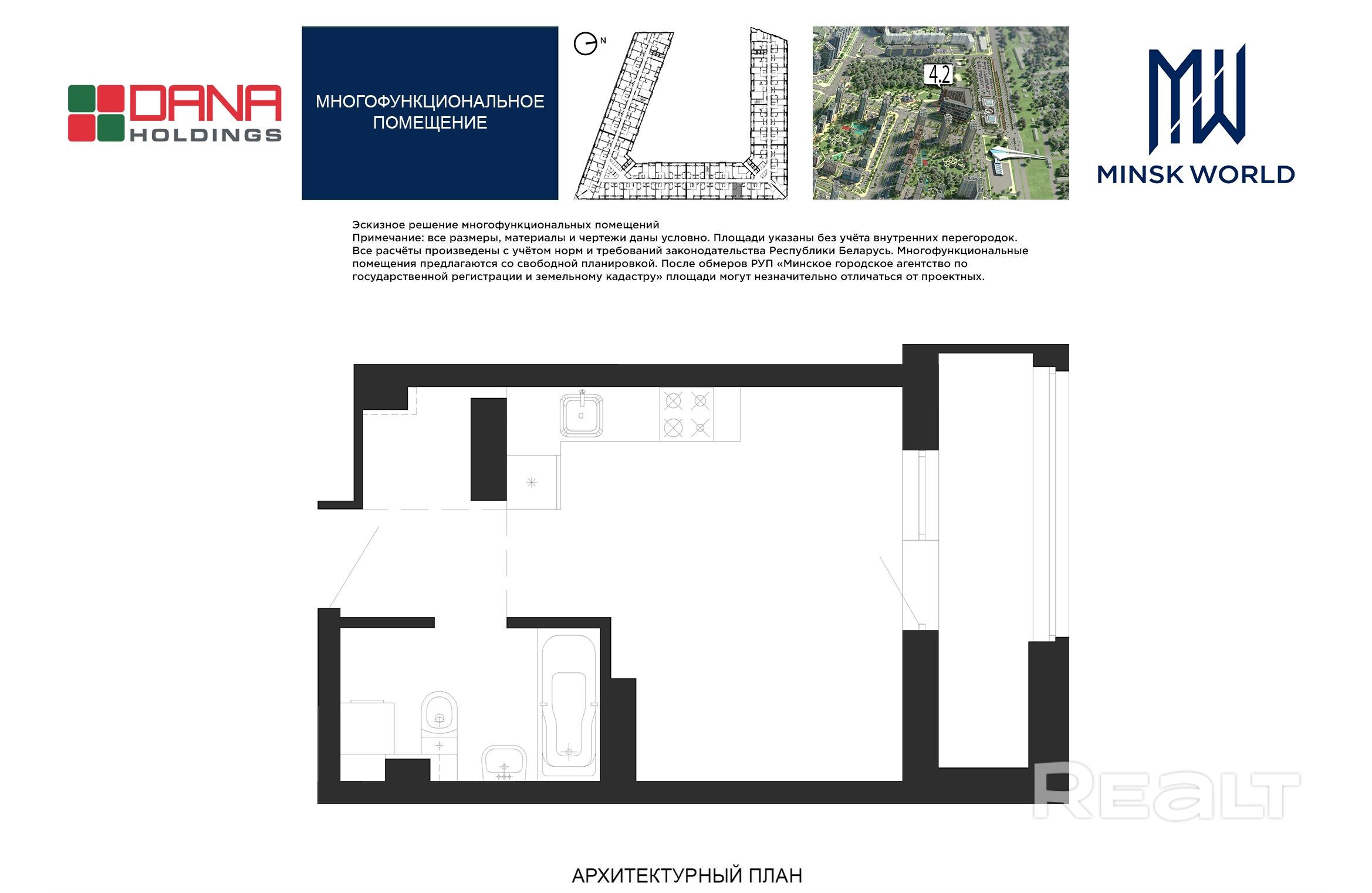 Высота от пола до потолка — 2,67 м. Большинство бизнес-апартаментов имеют панорамные окна, в каждом — лоджии.