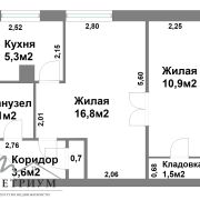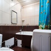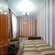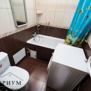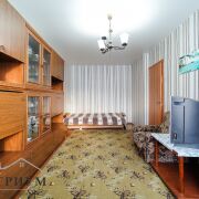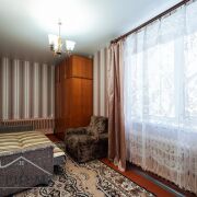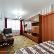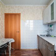 Квартира в жилом состоянии. Удобная планировка для жизни: изолированная комната и проходная гостиная, полы деревянные, на стенах обои. Санузел совмещенный, на полу и стенах плитка. Входная дверь — металлическая.