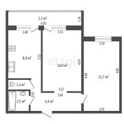 Кухня — 8 м2, гостиная — 16 м2, изолированная комната — 12,7 м2