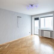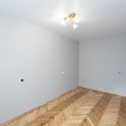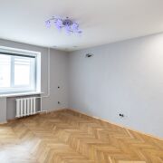 Отделка: стены — штукатурка и обои, пол — паркет, кухня — плитка