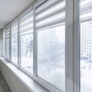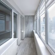 Просторная застекленная и утепленная лоджия — 6,4 м2 (3,2 м2), установлены москитные сетки и рольшторы