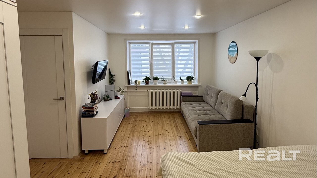 Светлая 1-комнатная квартира с хорошим ремонтом в спокойном районе Минска. До метро Тракторный завод 7 минут пешком. Тёплая квартира с высоким первым этажом, без шума и оживлённого трафика под окнами. Полностью заменены электрика и сантехника, встроенная кухня со всей техникой, включая посудомоечную машину. Ровные стены, моющиеся обои под покраску, качественный пол без скрипов. Дом 1960 г., капитальный ремонт в 2024 году. Развитая инфраструктура, рядом парки. Отличный вариант заезжай и живи!