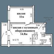 Благодаря возведению перегородки получилась рациональная евродвушка с кухней-гостиной около 15м и отдельной спальни 11м!