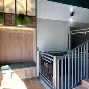 На этаже есть колясочная, а на первом этаже помещение для мытья лап домашним питомцам.