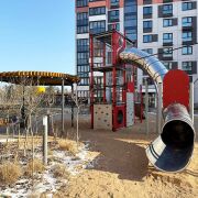 Двор без машин-огороженная территория. Во дворе современные детские площадки, зоны отдыха для взрослых, мини огород и много зелени. Дом расположен в непосредственной близости к Урбан-парку и новой школе!