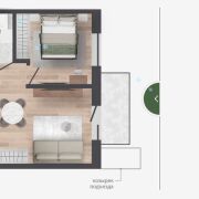 Квартиры на 1 этаже с личными участками-террасами с видом во двор и зеленый коридор.