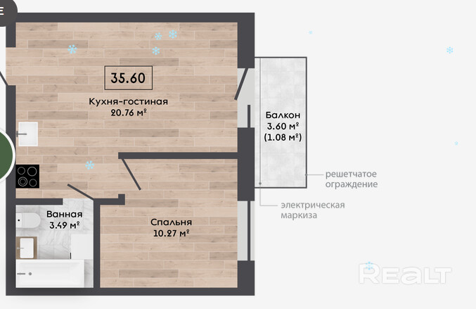 35.6 м²