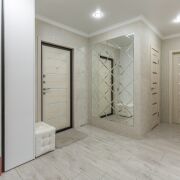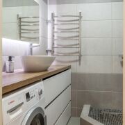 Напольное покрытие - ламинат Egger, в санузлах керамогранит. Продумана система вентиляции – это одна из важнейших составляющих здорового микроклимата, в комнатах установлены кондиционеры. По квартире разведена новая электропроводка.