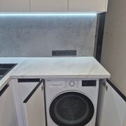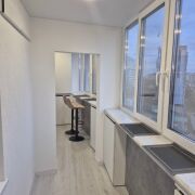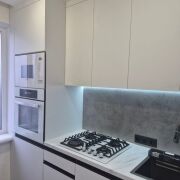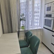 Напольное покрытие –ламинат и плитка, стены оклеены обоями, встроенная кухонная мебель со всей бытовой техникой, газовая плита , окна ПВХ.