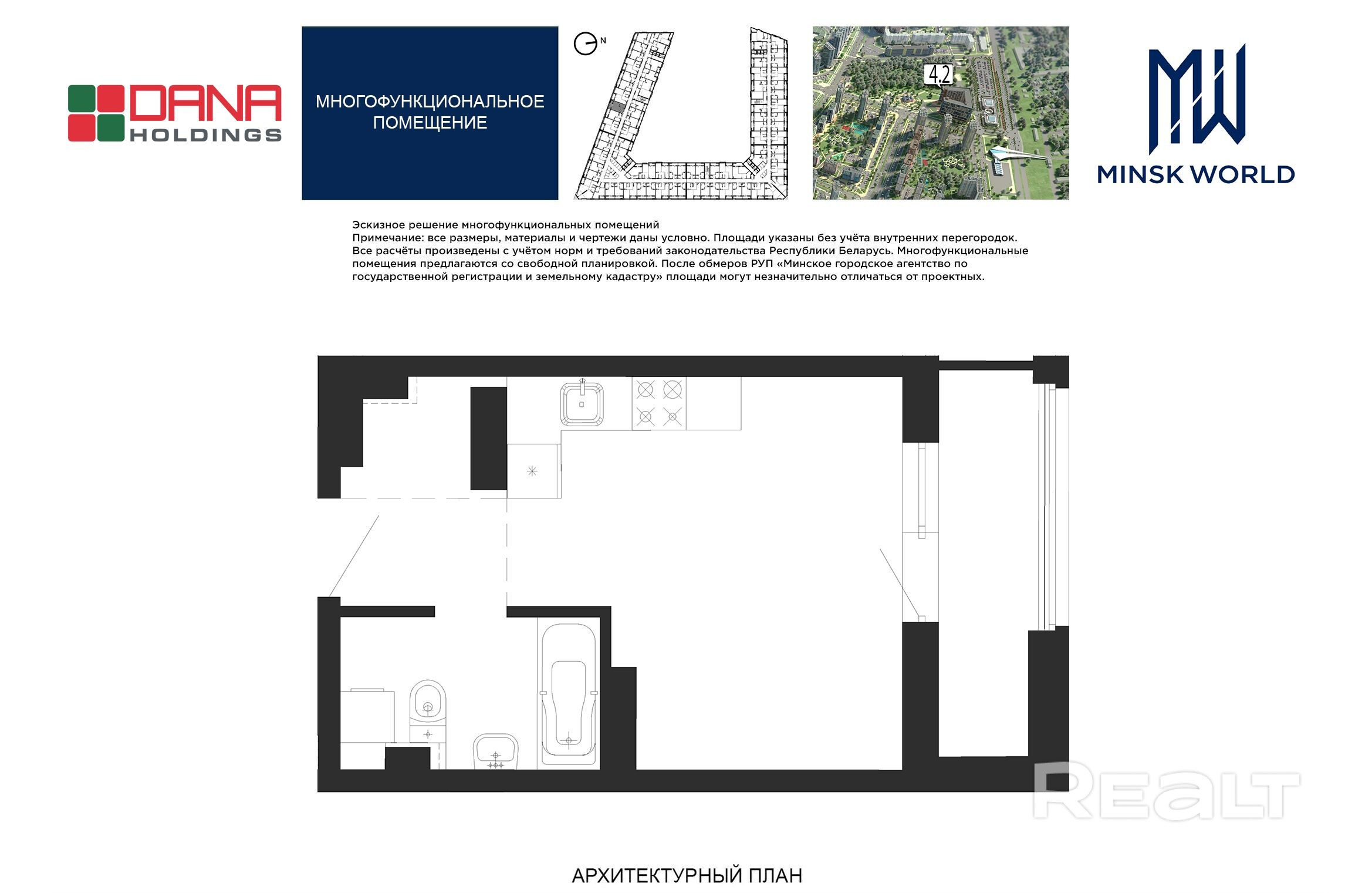 Высота от пола до потолка — 2,67 м. Большинство бизнес-апартаментов имеют панорамные окна, в каждом — лоджии.
