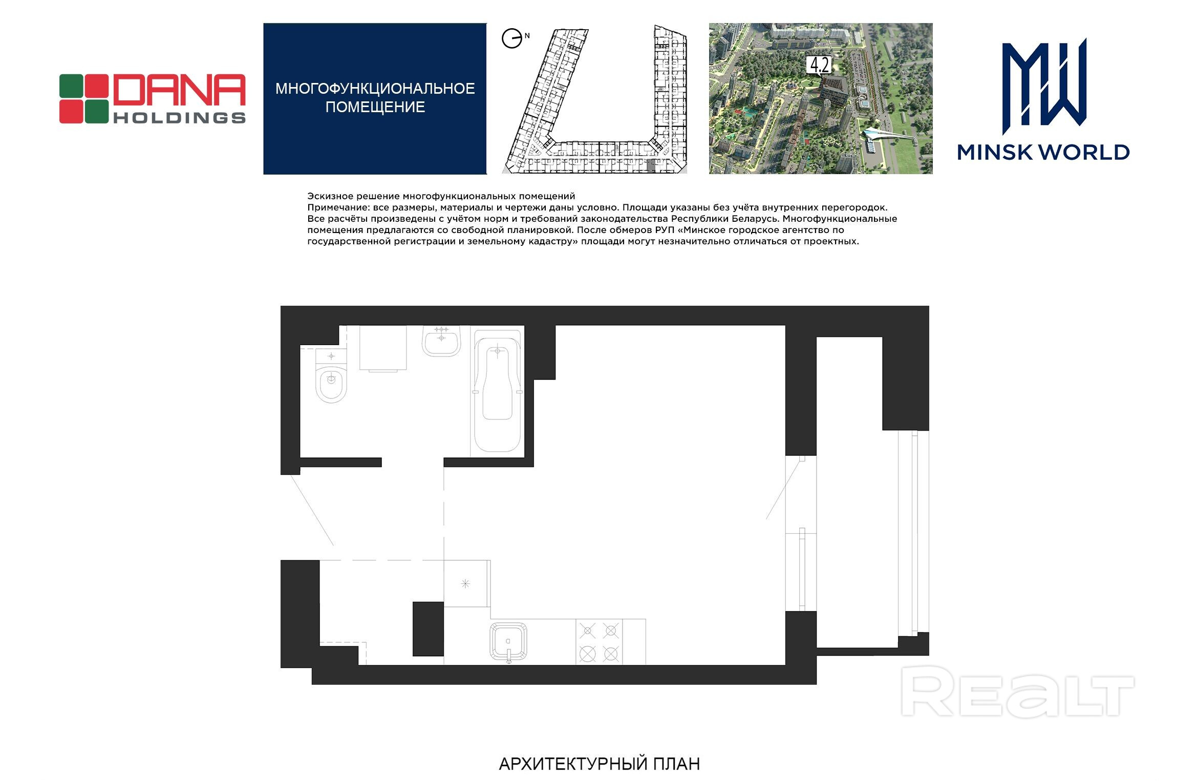 Высота от пола до потолка — 2,67 м. Большинство бизнес-апартаментов имеют панорамные окна, в каждом — лоджии.