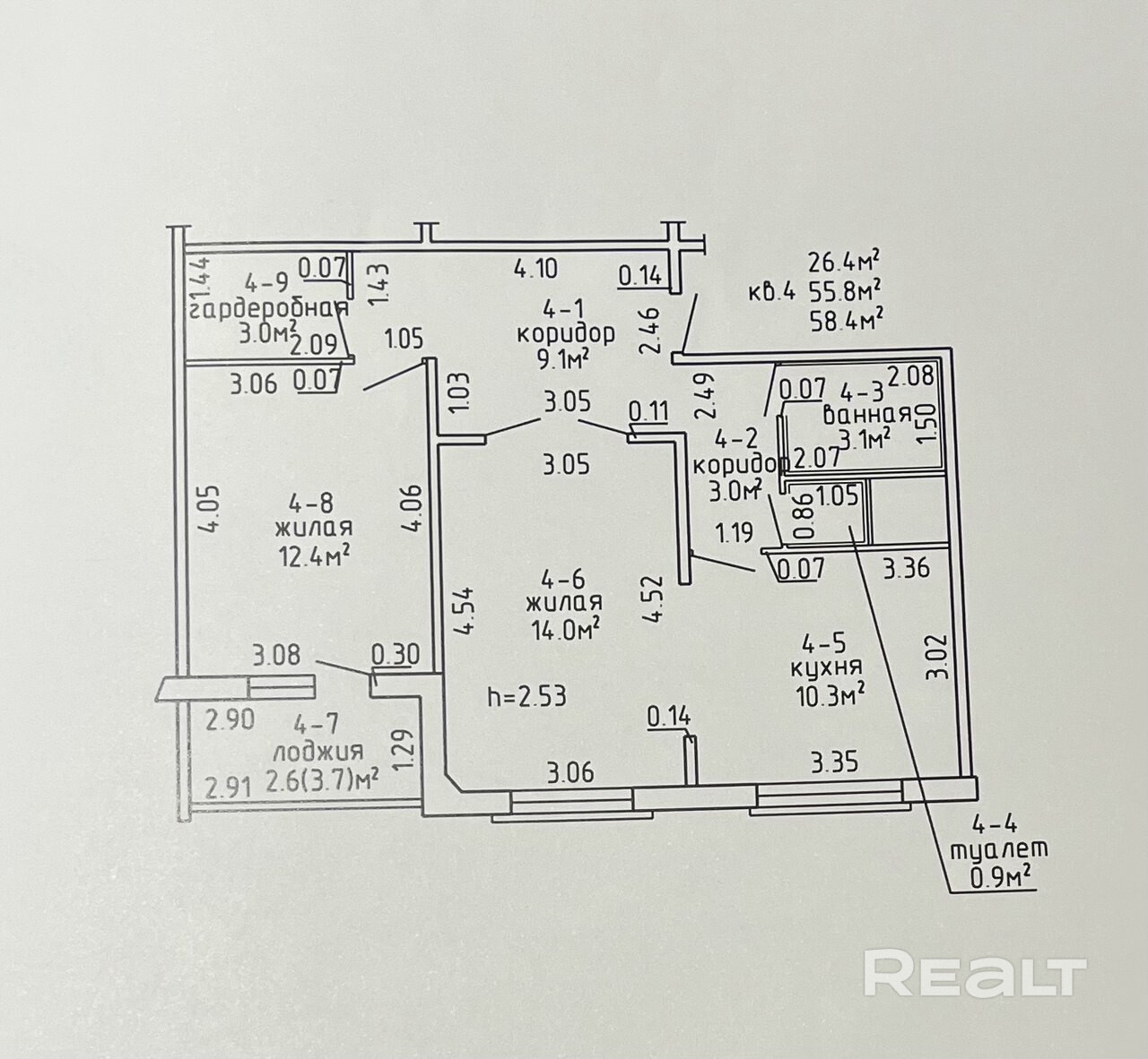 58.4 м²