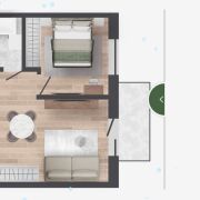 Квартиры на 1 этаже с личными участками-террасами с видом во двор и зеленый коридор.