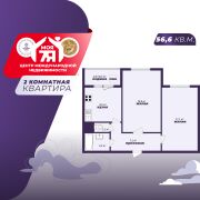 -Общая площадь 56,6 кв.м., жилая - 36 кв.м., метраж сбалансированный, квартира ощущается просторной и светлой.