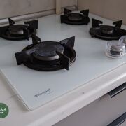 Встроенная кухня с доводчиками, варочная панель и вытяжка WEISSGAUFF, вытяжка с сенсорной панелью и подсветкой.