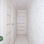 Установлены  стеклопакеты, фурнитура  MACO, роль шторы день-ночь. Полы стяжка с утеплением и гидроизоляцией, ламинат Tarkett 32 класс. Межкомнатные двери одной линейки шпонированые, входная металлическая дверь. Лоджия утеплена. Окна выходят на проспект Рокоссовсого, с потрясающим видом.
