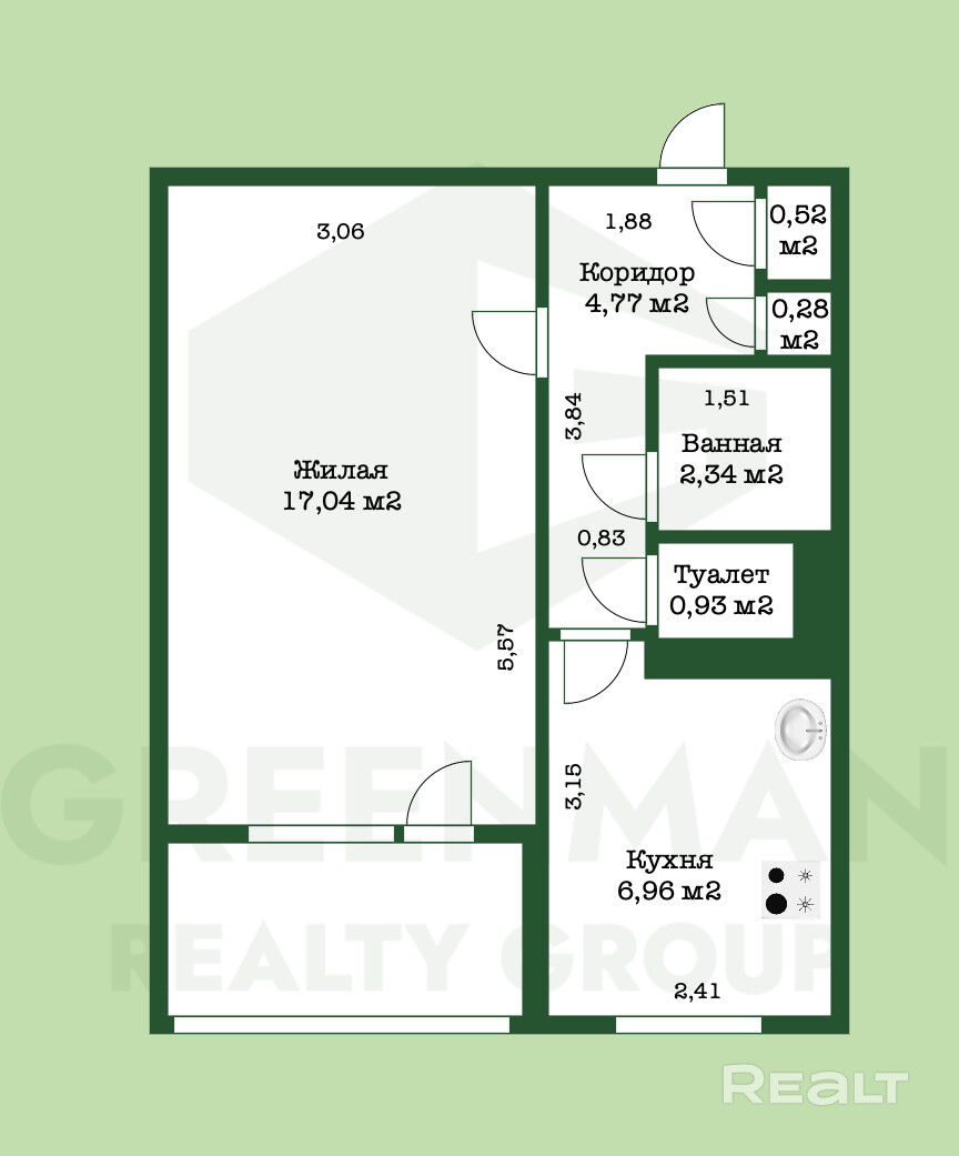 17.04 м²