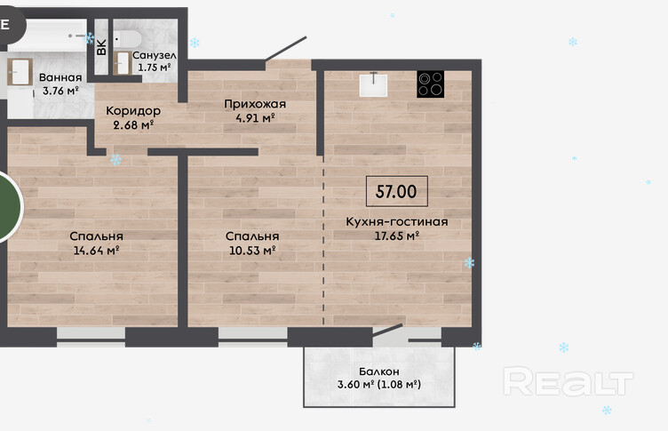 Квартира с кладовой 3,22м2.