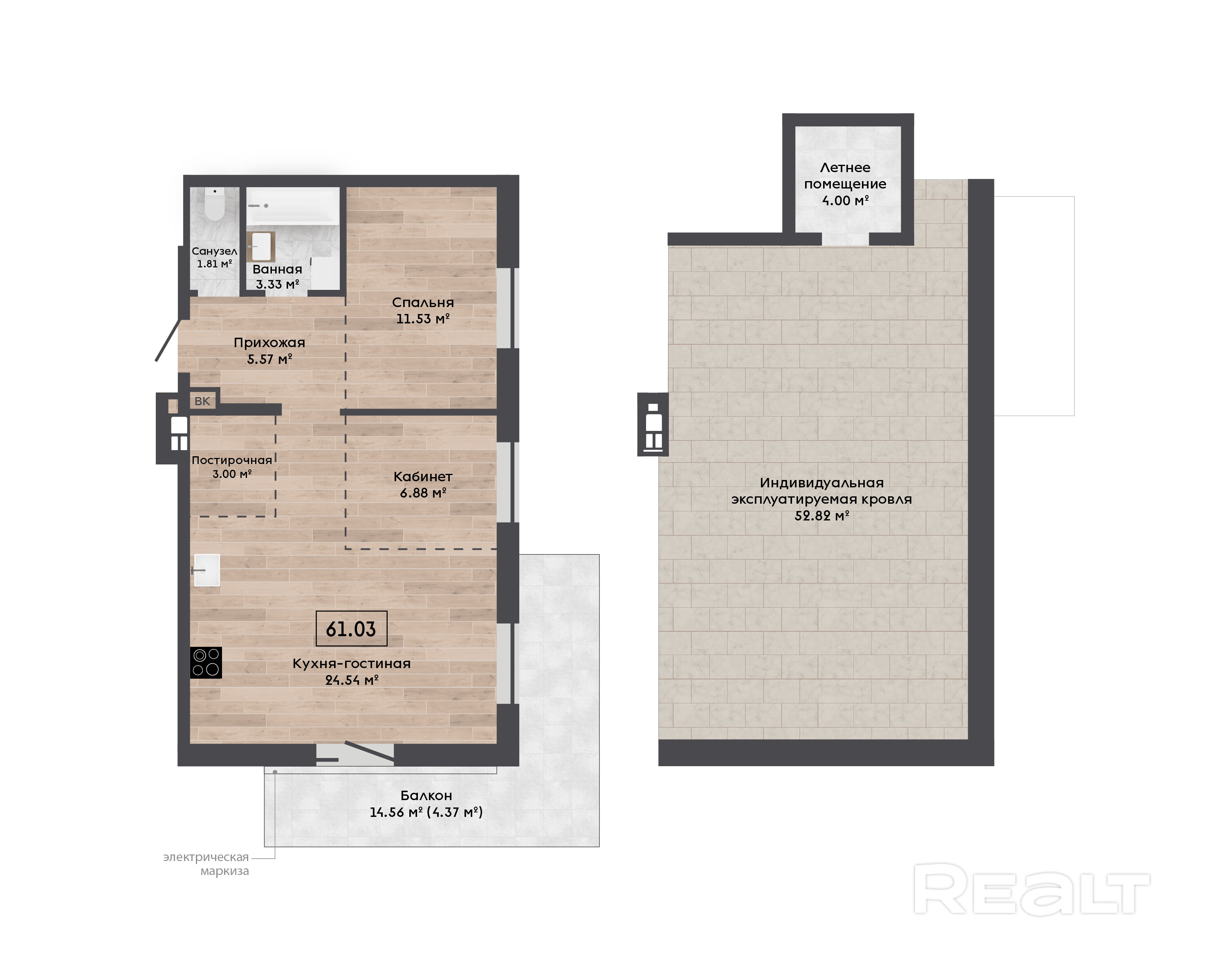 📐 Общая площадь — 61,03 м2