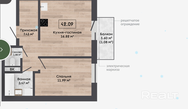 Квартира с отделкой White Box Basic и кладовой 2,95м2.