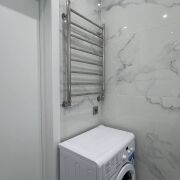 Кухня оснащена холодильником, духовым шкафом и электроплитой, в санузле — немецкая инсталляция, стиральная машина остаётся.