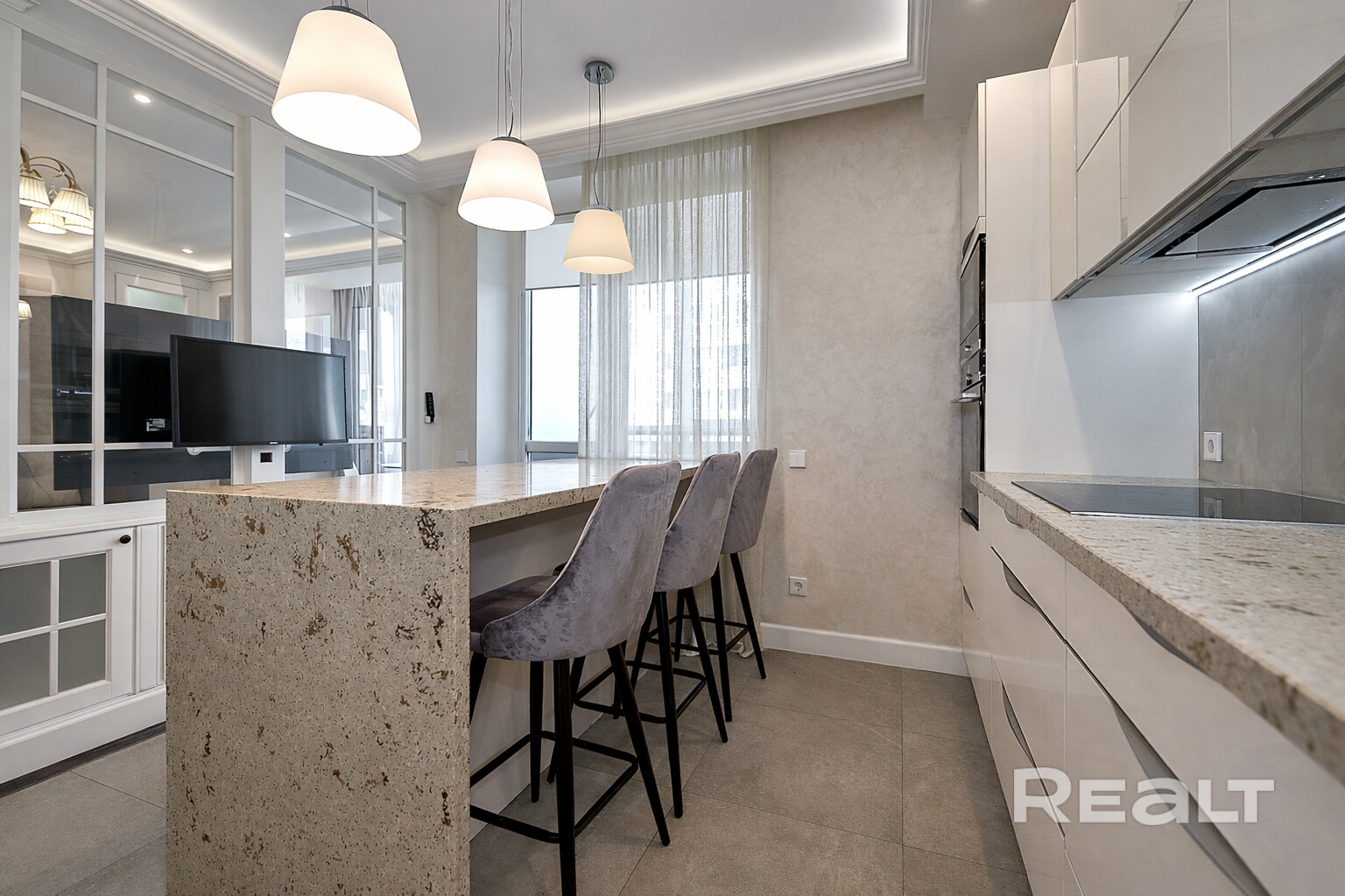 Предлагается к продаже просторная квартира премиум-класса в одном из самых престижных и экологически чистых районов Минска — Лебяжий, в жилом комплексе «Променад».