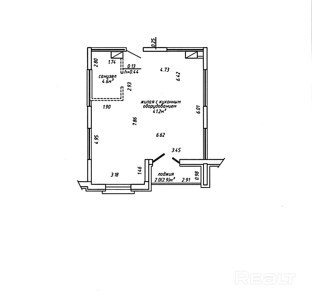 Общая площадь по СНБ 47,8 кв.м. Общая площадь 45,8 кв.м. Высота потолка