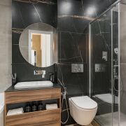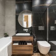 • Приватная аква-зона: В квартире оборудованы и большая ванна, и душевая кабина.