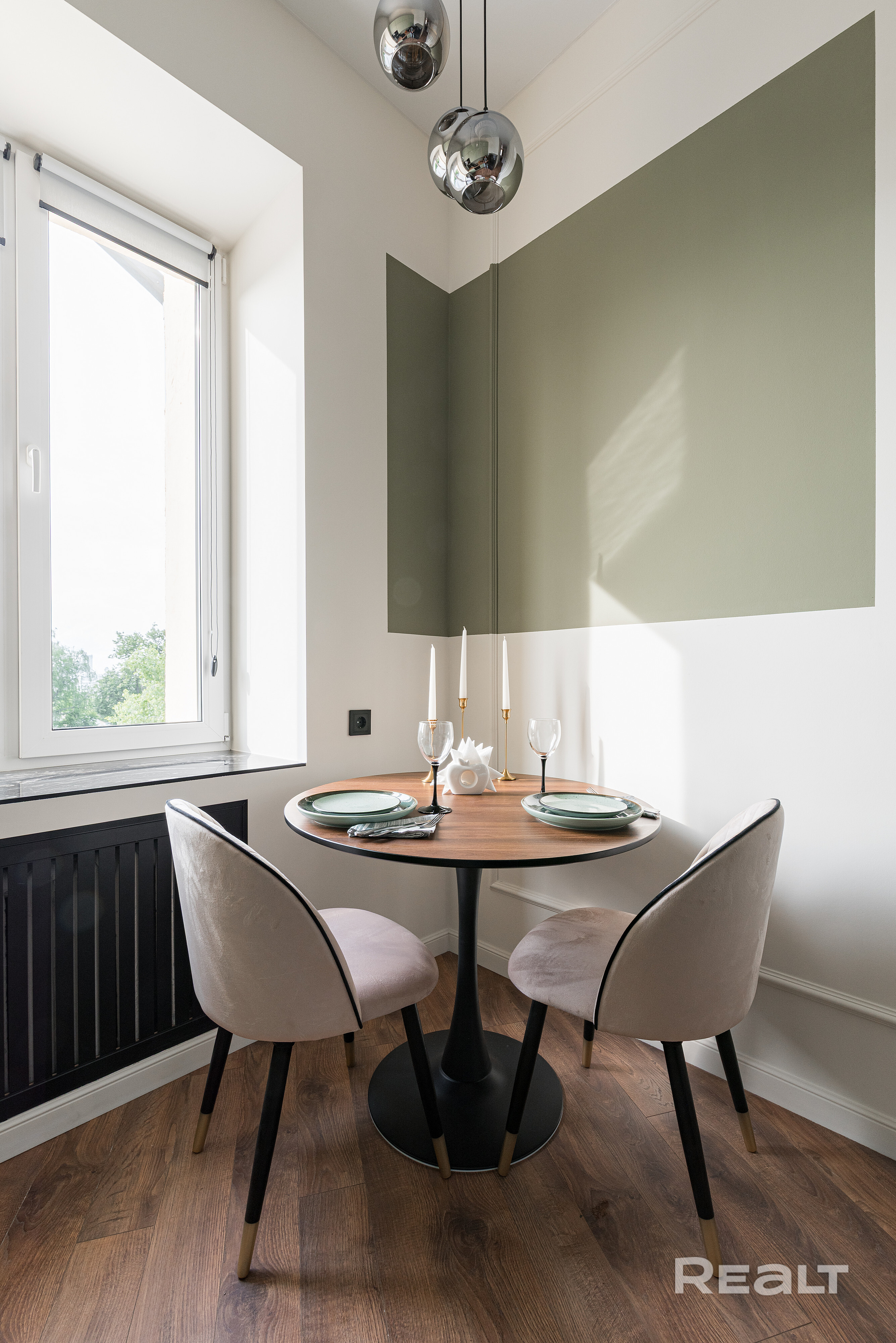 Здесь время замирает: пока две комнаты созерцают парадный ритм проспекта Независимости, ваша спальня остается в абсолютной тишине. Уютный балкон с видом на аутентичные крыши Минска станет вашим любимым местом для закатов, которые здесь выглядят иначе.