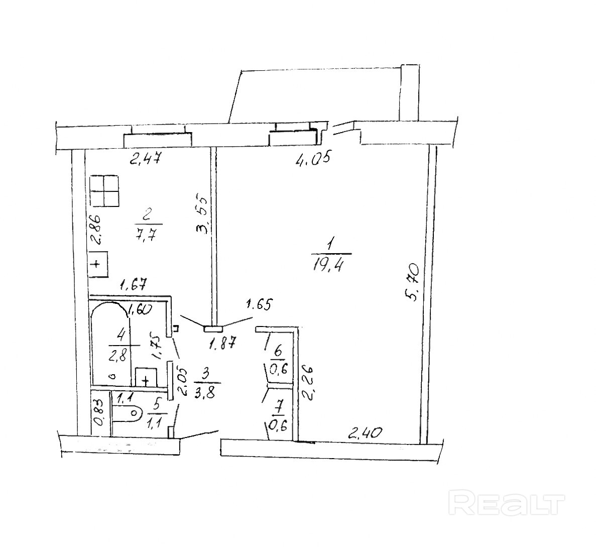 7.7 м²