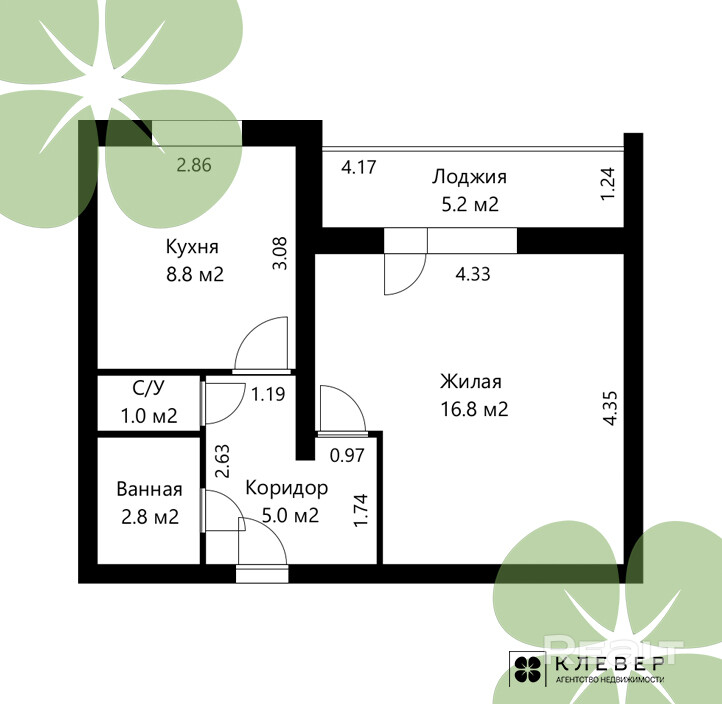 по СНБ — 37 м2 за счёт просторной лоджии.