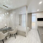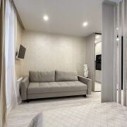 Квартира имеет грамотное зонирование, которое позволяет разделить пространство на зоны кухни, гостиной, коридора, а также выделено отдельное спальное место.