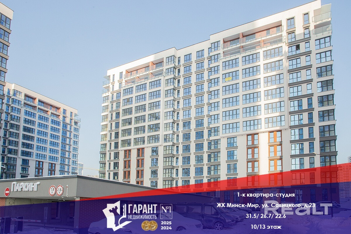 В продаже квартира-студия в ЖК «Минск Мир» расположена по адресу ул. Савицкого, 23.