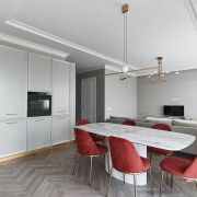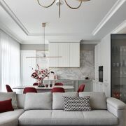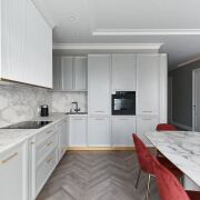Диван, кровать, стулья, пуф - фабричные, заказывали из Италии. Техника в кухне бренда AEG (варочная панель, духовой шкаф, посудомоечная машинка) холодильник Liebherr) , установлен измельчитель пищевых отходов.