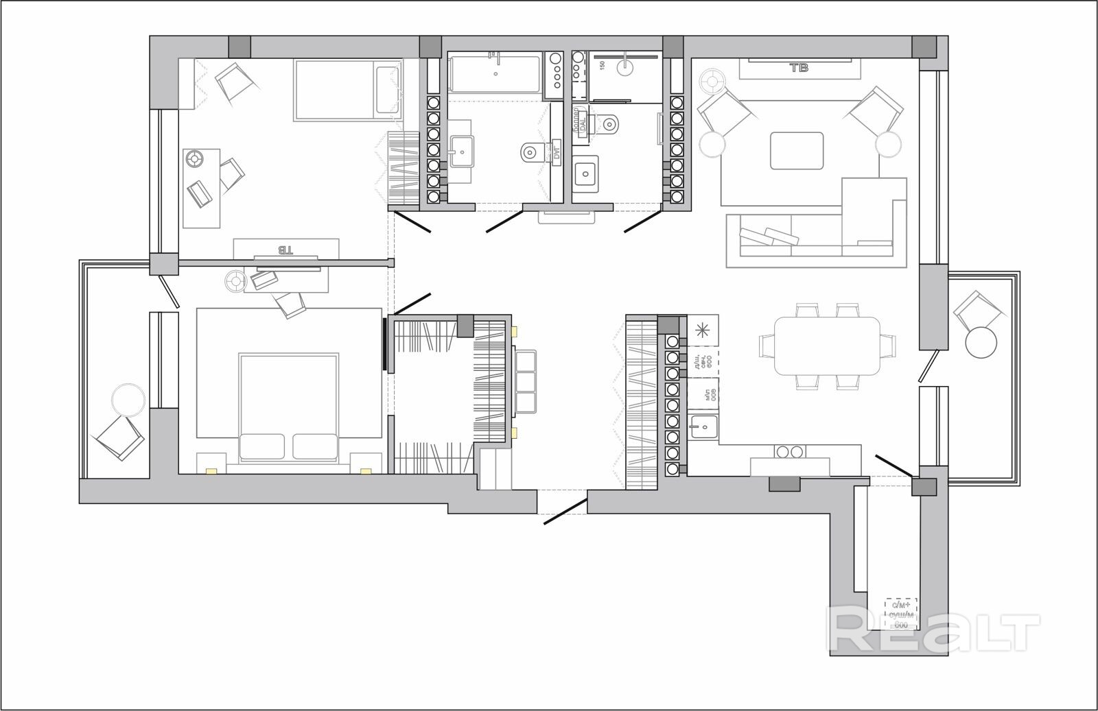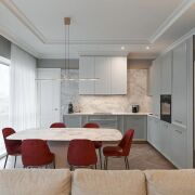 Проект квартиры изготовлен известными дизайнерами г.Минска. Премиальная отделка. В квартире: мебель изготовлена по индивидуальному проекту. Двери изготовлены компанией Lazio. В сан/узле + пол керамогранит, теплый пол, сантехника встроенная, установлен фильтр. В квартире предусмотрено несколько режимов освещения.