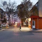 Территория комплекса огорожена и находится под круглосуточной охраной, по периметру установлено видеонаблюдение. На территории установлены детские площадки.