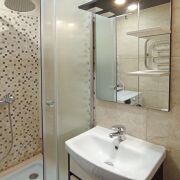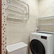 Раздельные санузел и ванная комната также облицованы плиткой.
