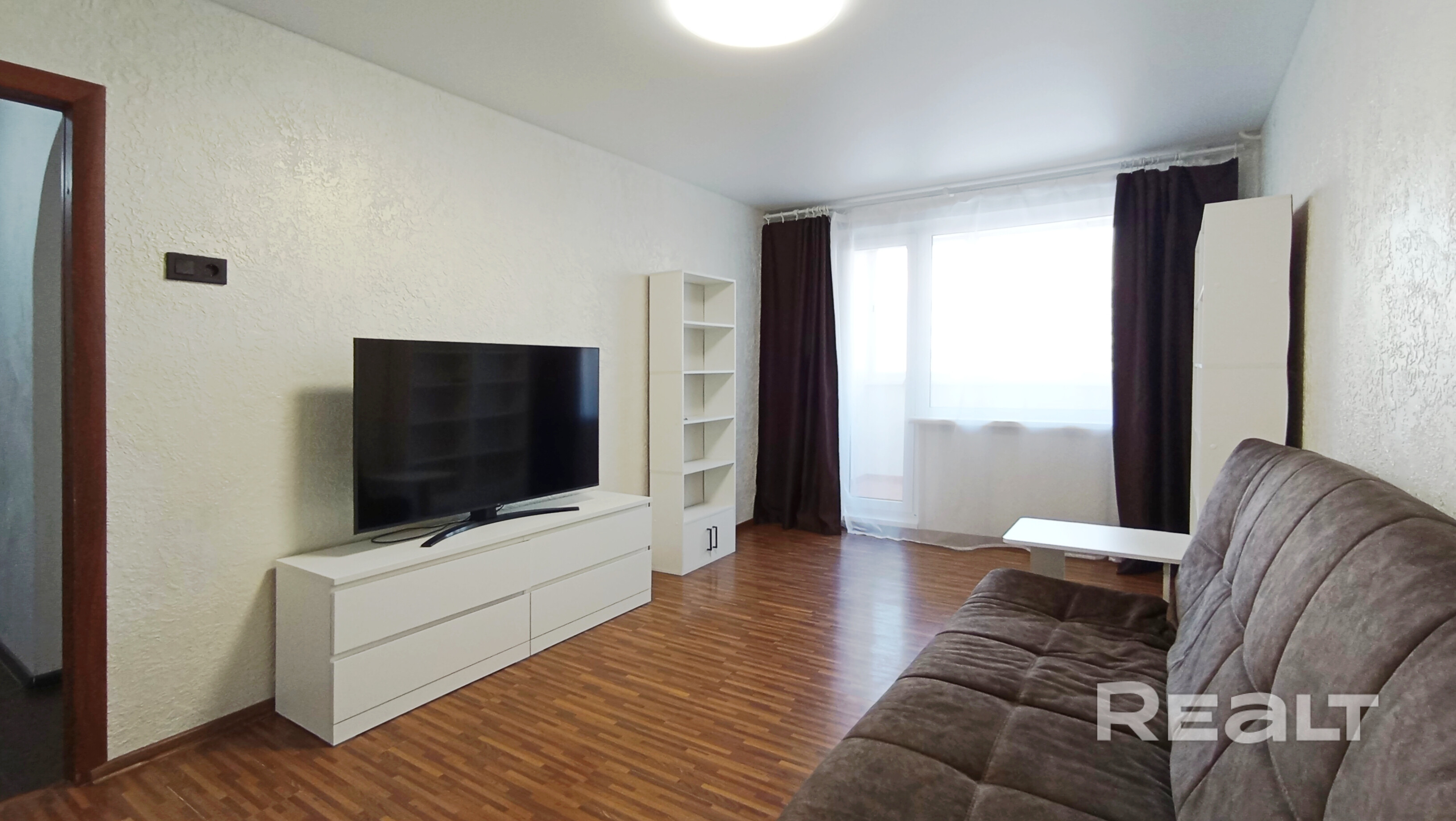 В комнате на полу уложен ламинат.