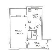 Квартира состоит из одной жилой комнаты (22,2 кв.м.), кухни (9,9 кв.м.), коридора (9,4 кв.м.), санузла (1,8 кв.м.), ванной (3,2 кв.м.) и лоджии (2,1 кв.м.). Высота помещения 2,64 м. Площадь по СНБ 48,0 кв.м.